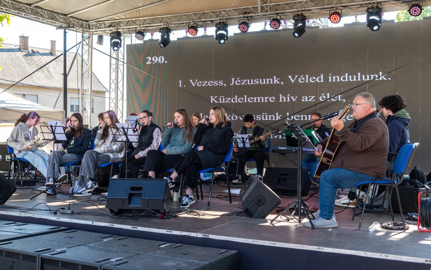 „Új szövetséged elfogadom, magam egészen neked adom” – énekelték a dunaszentgyörgyi templomdombon összegyűlt családok, presbiterek, lelkészek és gyülekezeti tagok a Tolnai Református Egyházmegye Ifjúsági Zenekara vezetésével a Ráday Gyülekezeti nap reggelén.