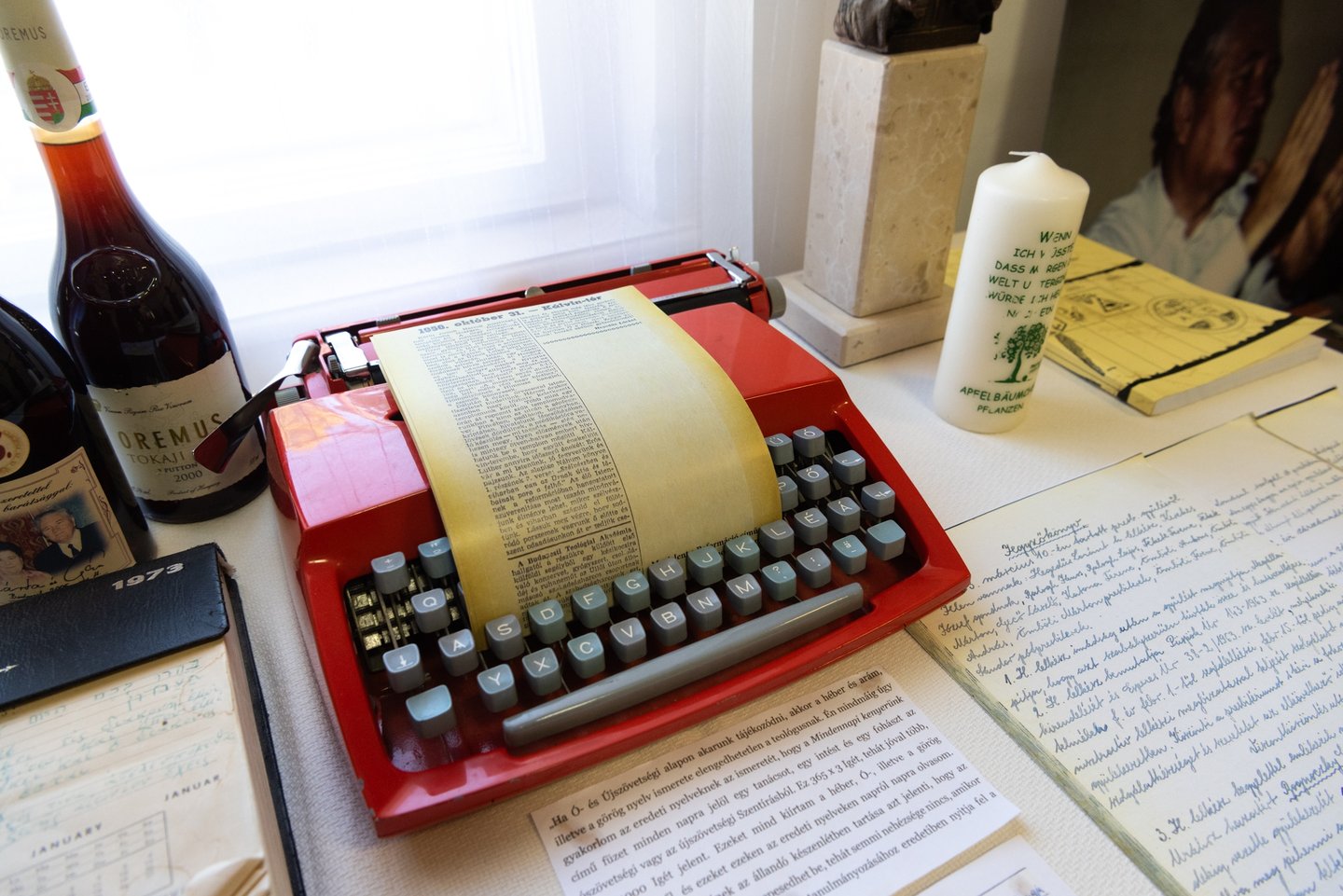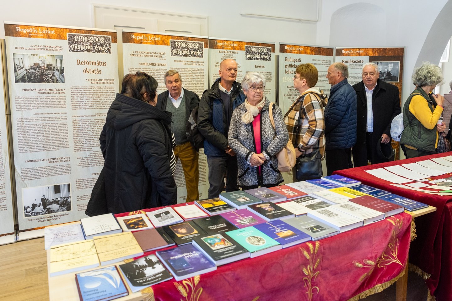 Ide érkezett meg a néhai Hegedűs Loránt dunamelléki püspök életművét megörökítő másik tárlat is, melyet lánya, Mészárosné Hegedűs Zsuzsanna, a Budapest-Cimbalom Utcai Református Egyházközség lelkipásztora nyitott meg. „Míg tart a ma” – ez a címe a vándorkiállításnak, ahogy Hegedűs Loránt 1990-ben megjelent rendszerváltó tanulmányának is. A kézzel írt levelekkel és képekkel gazdagon illusztrált anyag a lelkipásztori szolgálat, a püspöki évek és a magyarság szeretetének témái köré épül. A tárlat legnagyobb kincse az a könyv, melyet Hegedűs Loránt Ravasz László püspöktől kapott: Baksay Sándor saját kezűleg írott imádságoskönyve, melyet továbbőrzésre adott kedves tanítványának, meglátva benne a későbbi egyházvezetőt. A könnyen mozgatható elemekből álló vándorkiállítást bármelyik gyülekezetbe szívesen elviszik – hangzott el a megnyitón.