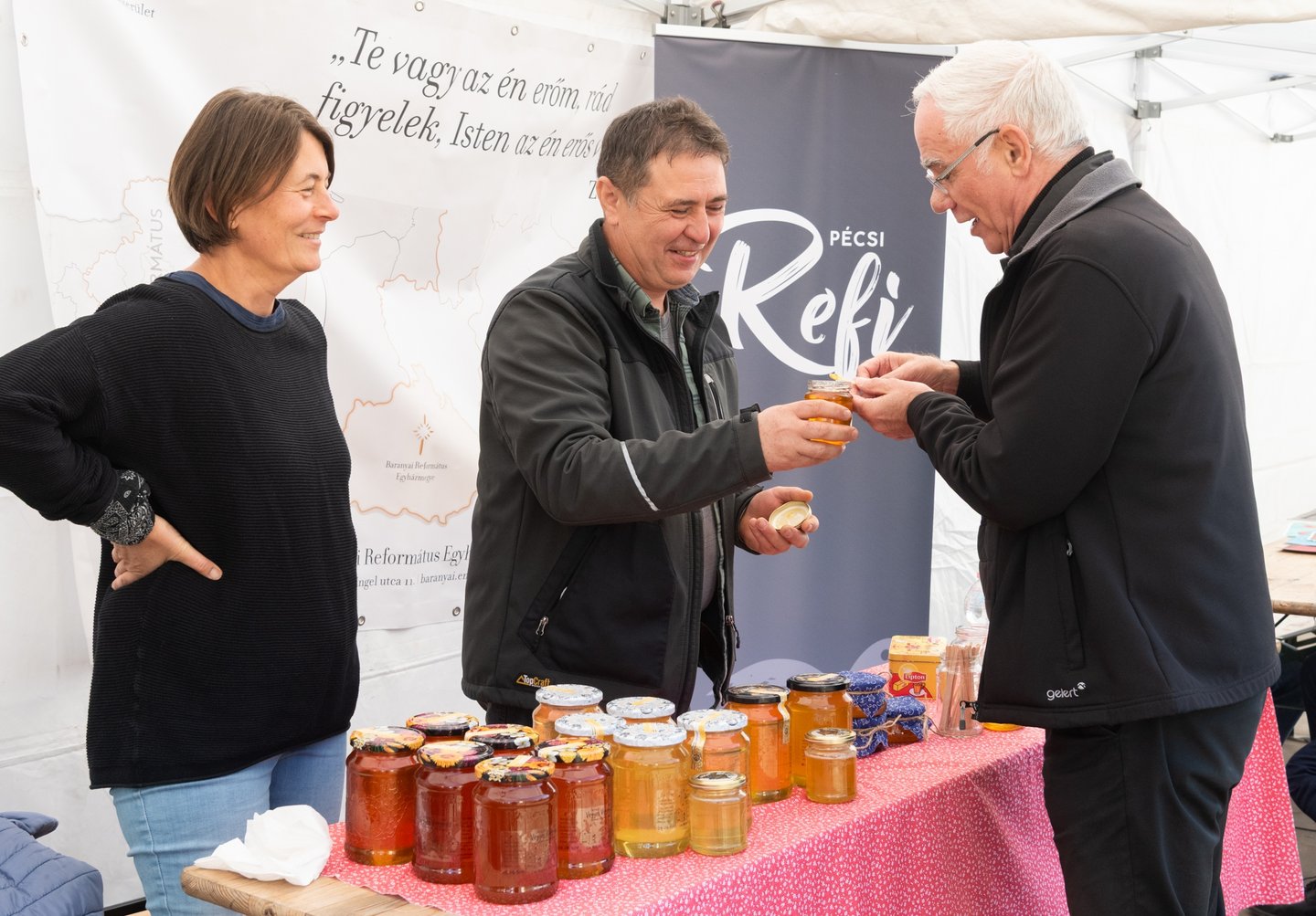 Tőttös Gábor történész, a Tolnai Református Egyházmegye presbiteri főjegyzője (a képen balról a második) úgy fogalmazott: történelmi múltunk szikla, amelyre kötelességünk építeni, hagyományainkat, értékeinket tovább kell adnunk. Ezt azonban nem érdemes erőszakosan tenni, amit viszont tehetünk: hitünk megvallása és a személyes példamutatás.
