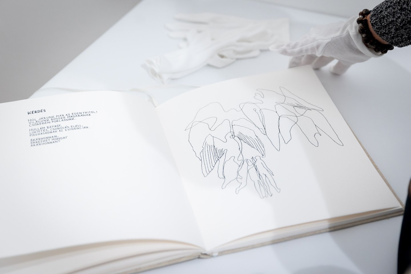 A napok sodrásában elkoszosodnak, időről időre elhasználódnak, kiüresednek a szavaink. Ezért fontos olykor a laboratóriumi környezet, hogy újratanuljuk, megkeressük és megtaláljuk a szavak értelmét és kezdjünk újra hinni a szavak kimondásának értelmében és mindenekfelett a párbeszédben. Abban a magasabb rendű párbeszédben is, amire meghívnak Martinecz Nóra Pilinszky János verseire felelő grafikái.