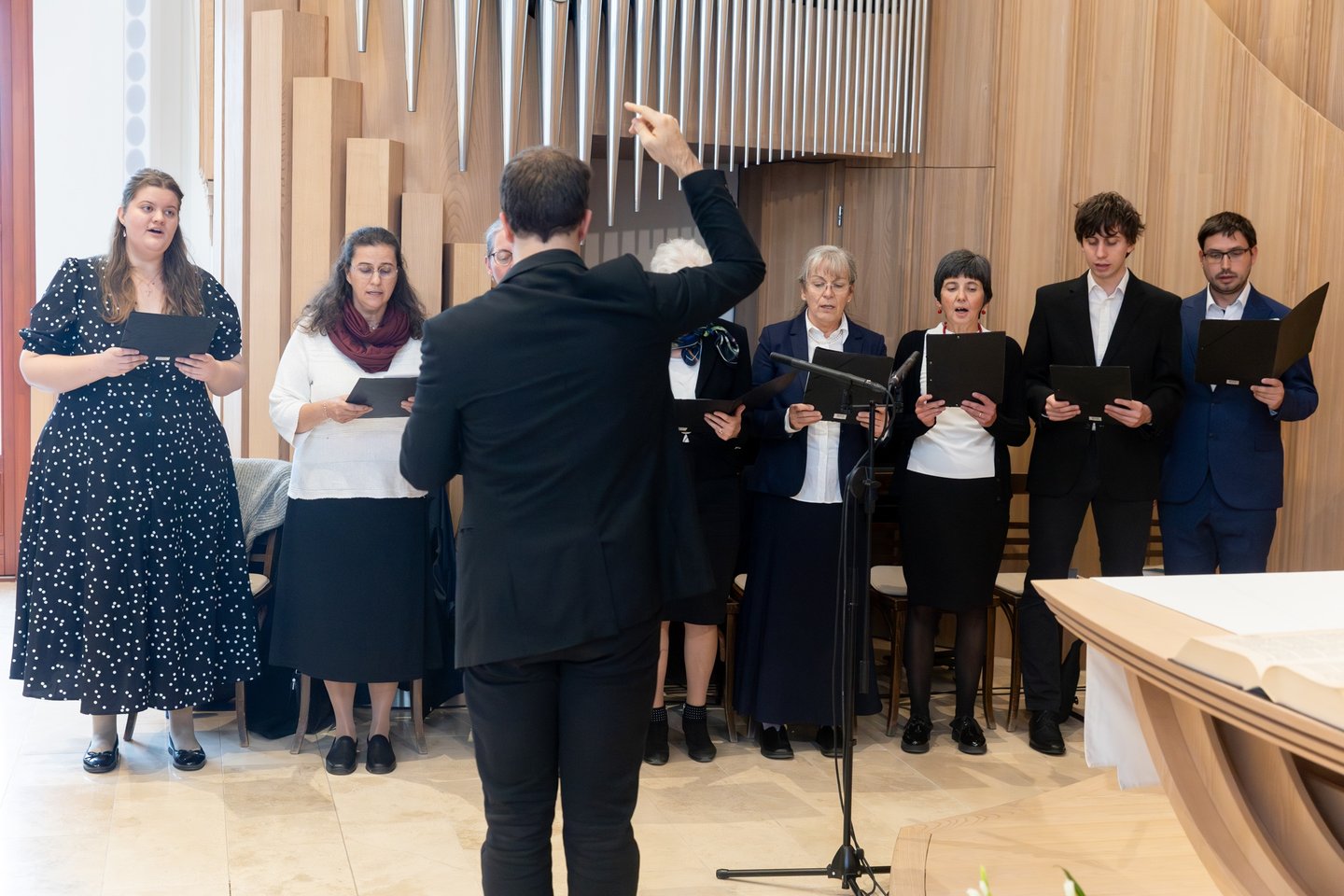 Ezt követően a gyülekezeti kórus karnagyuk, Dosek Domokos kántor vezényletével Gárdonyi Zoltán: Mondjatok dicséretet című kórusművét énekelte.