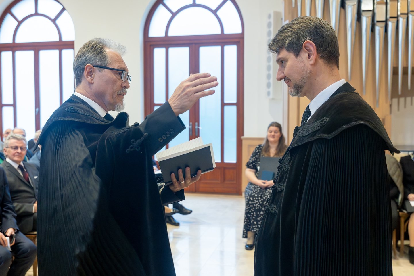Az igehirdetést követően Gárdonyi Zsolt orgonaművész előadásában hangzott fel a 134. genfi zsoltár a szerző kétféle feldolgozásában. A beiktatás szolgálatát Kovács Gergely, a Budapest-Déli Református Egyházmegye esperese végezte. Az elöljáró először is köszönetet mondott a lelkészi teendőket ideiglenesen ellátó Berta Zsolt svábhegyi lelkésznek, valamint Szabó Balázs főgondnoknak a presbitérium vezetéséért.