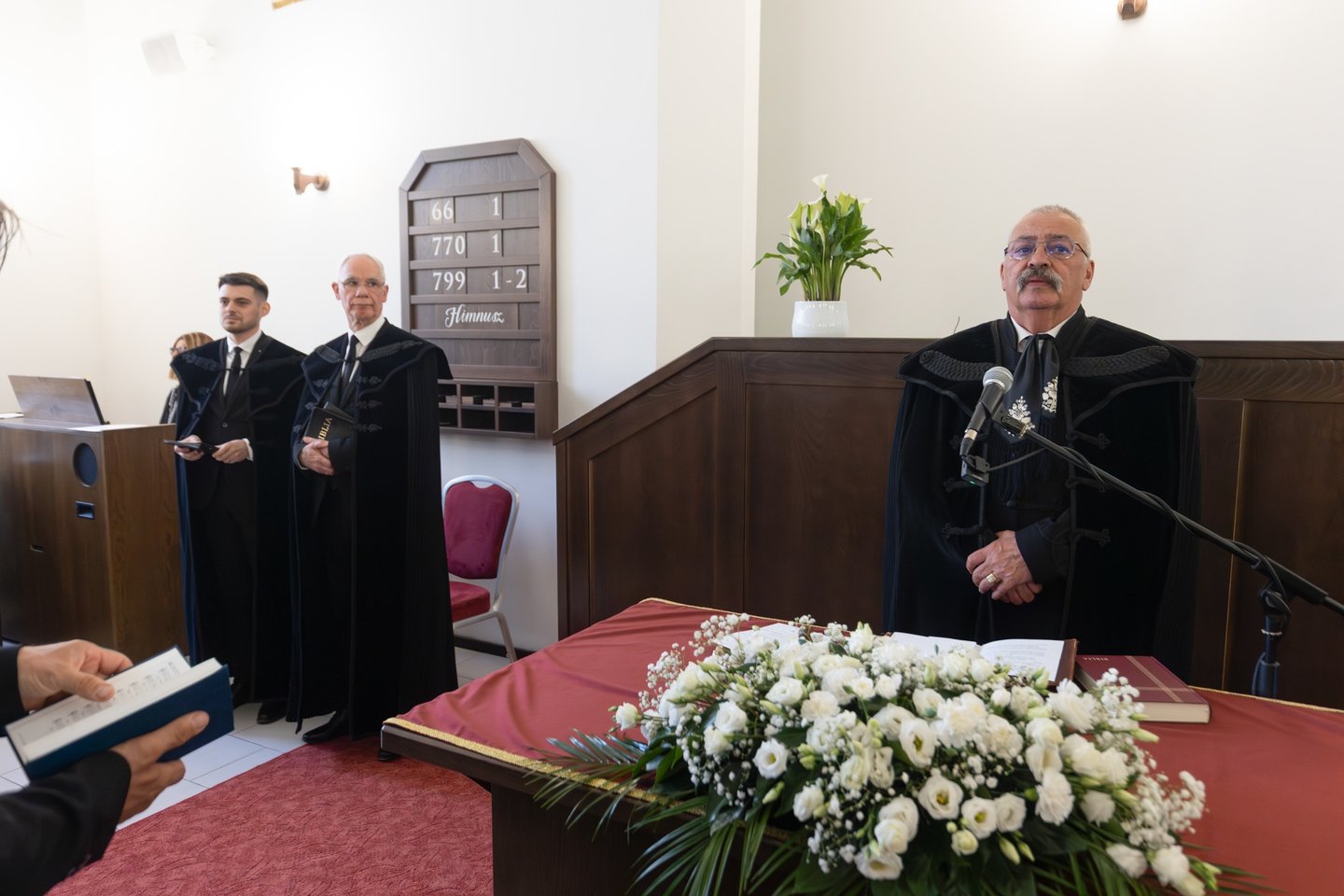 „Hisszük, valljuk, hogy a gyülekezet nem cél, hanem eszköz. Hisszük, hogy az igére figyelő, azt befogadó testvéri közösség hivatása és küldetése az, hogy a tanítottak tanítvánnyá legyenek, akik bizonyságot tesznek szóval, szolgálattal, és megváltott életükkel az Üdvözítőről és a megmentő kegyelemről” – hangzott Pocsai István gyülekezeti főgondnok köszöntésében. Hálát adott a közösségben megtapasztalt isteni gondviselésért, vezetőjük és az igehirdetés szolgálatáért, hozzáfűzve, hogy „az ige a legfontosabb életfeltétel”. „Imádkozunk az igehirdetés és a pásztorlás közöttünk végzett szolgálatáért, az igét befogadó szívekért, a gyülekezet tagjainak megtéréséért, hitre jutásáért, szeretetben való közösségéért” – ígérte. Végezetül átadta a gyülekezet ajándékait: Molnár Zsoltnak a most készülő lelkészi palást fotóját, feleségének, Rékának pedig egy rózsacsokrot.
