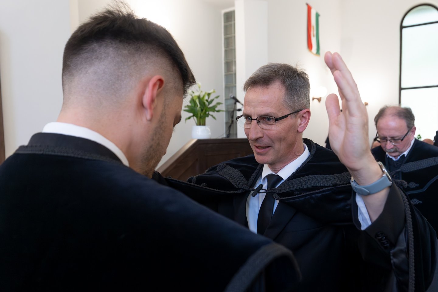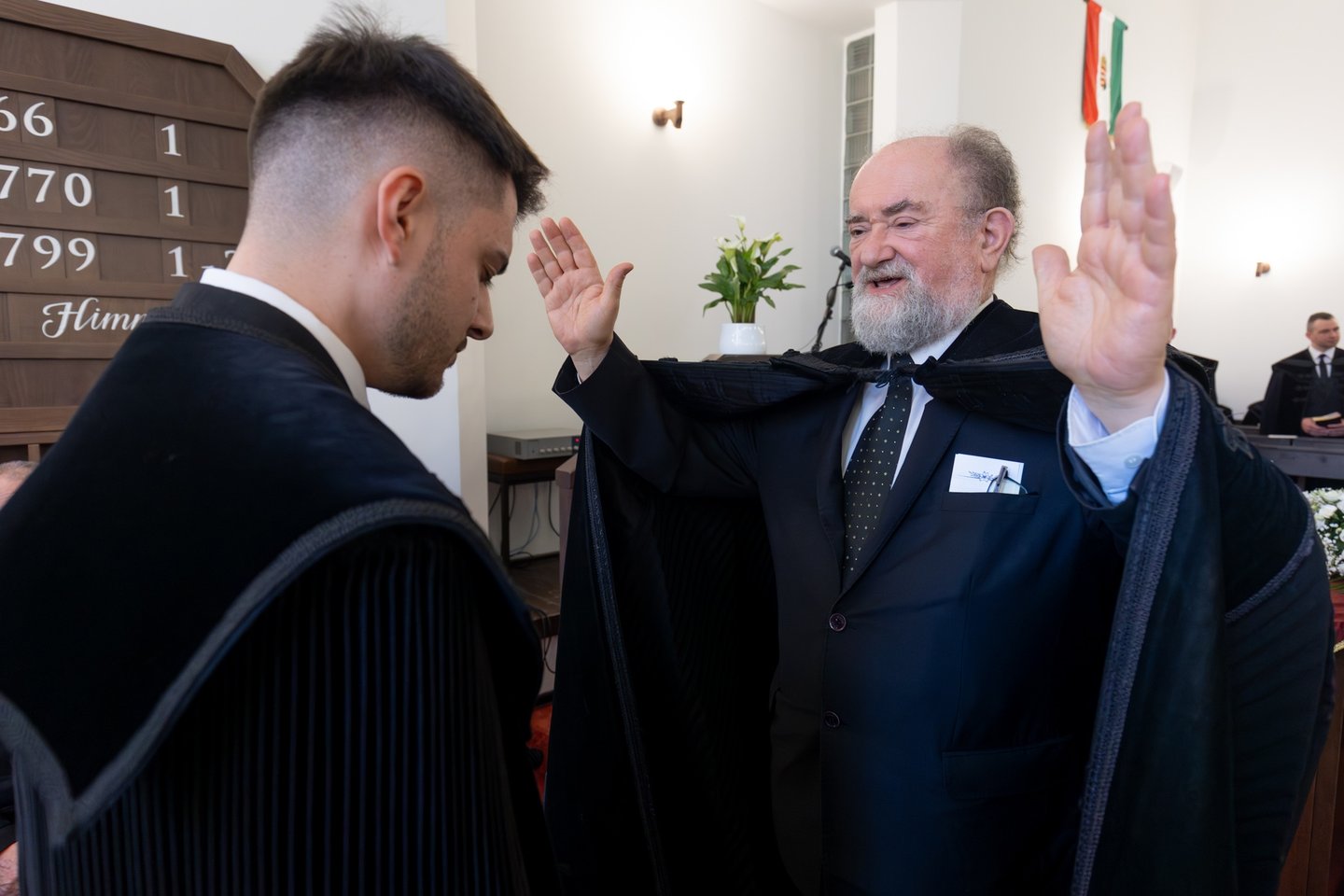 „Úgy van rendjén, ha egy diáknak a tanára először atyjává lesz, aztán testvérévé és végül barátjává. Ez megadatott nekem és hálás vagyok érte Istennek” – fogalmazott köszöntőjében Hős Csaba, a Károli egyetem adjunktusa, felcsúti lelkipásztor. Arról is beszélt, hogy bár a teológián tanította Zsoltot, mégis kölcsönösen tanultak egymástól: ő tanította neki az igehirdetésnek „a szenvedésbe ágyazott gyönyörűségét”, maga pedig tanult tőle szelíd határozottságot, amivel mintává és példává lett számára a zsenge korú teológus, és ezt meg is köszönte most neki. „Vess a szívekbe élő igét, krisztusi indulatot, igaz magyarságot, és meg fog áldani az Úr Isten a szolgálatodban, családod, gyülekezeted, egyházad közösségében!” – fejezte ki jókívánságait.