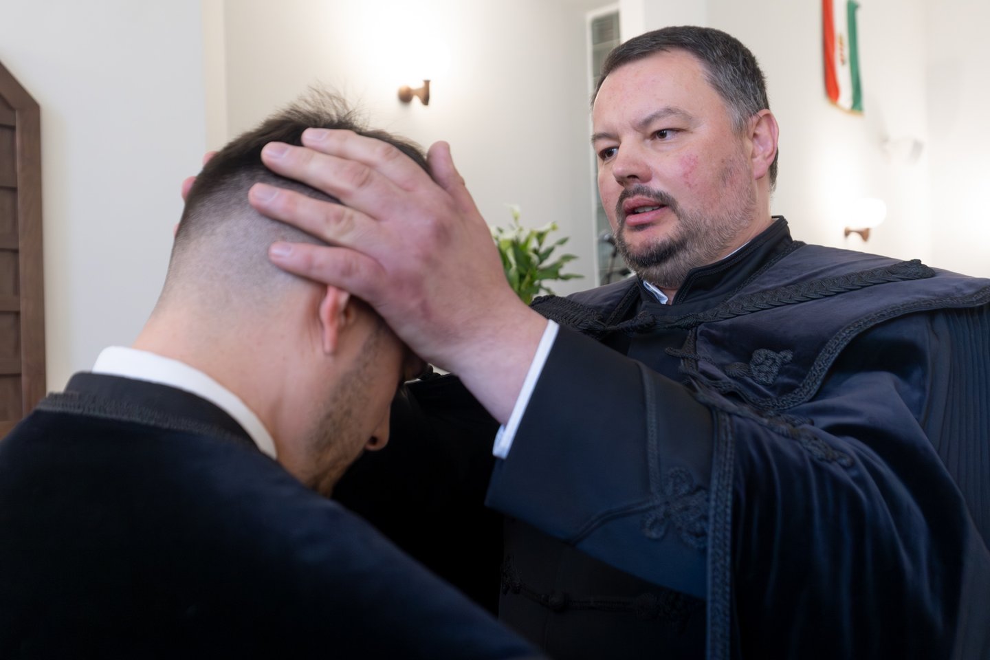 „Ha a szolgálatod gyümölcseire akarod építeni az életedet, a tanítványságodat, akkor előbb-utóbb el fogsz bizonytalanodni. Ha arra építjük az életünket, amit tettünk, akik vagy amik vagyunk, az csapdája lehet a lelkipásztor életének is.” Arra építsetek, amit Jézus mond: „annak örüljetek, hogy a nevetek fel van írva a mennyben” – hívta fel a figyelmet a püspök. Sőt, nemcsak a mennyben van felírva a nevünk, hanem bele van metszve Krisztus átszegzett tenyerébe. „Ez mutat arra, hogy áron vétettél meg; ebből indulj ki” – emlékeztetett az elöljáró. „Lelkipásztorotok jó családból érkezik, van mire építeni: olyan családi múlt és jelen, amelyben ott a helytállás, és a nagyon nehéz kárpátaljai helyzet ellenére is van öröm, felszabadultság is. Mégis azt mondom, hogy ne erre építs – még ha ebből tanultál is –, hanem a bizonyosságra, hogy a neved fel van írva a mennyben.” Balog Zoltán végül imádságában megköszönte Istennek az ifjú lelkipásztort, az ide vezető útját, azt a családi és egyházi közösségét Kárpátalján, amely lelkészeket indít el a szolgálatra újra és újra, és hálát adott a befogadó délegyházi gyülekezetért is.
