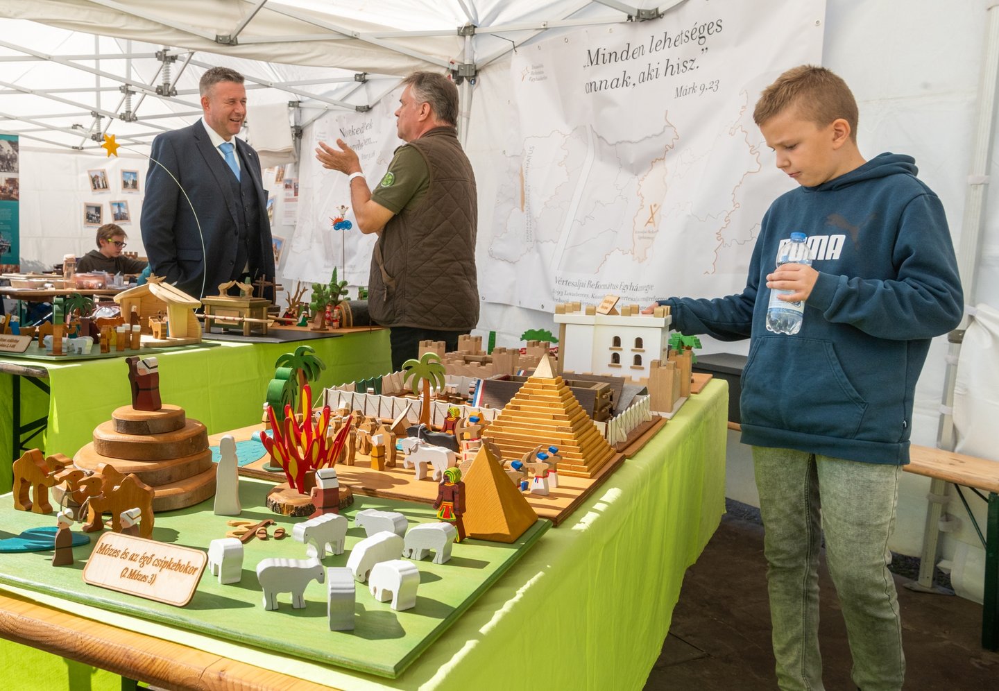 Az istentisztelet után a templom és környéke színes forgataggá változott. A színpadon hagyományőrzők léptek fel, betekintést engedve a tolnai nemzetiségek és kistájak népzenéjébe és néptáncába. A közösségi ház udvarán a gyerekek Noé bárkájának állatait készíthették el a Bárka Tábor munkatársaival, kipróbálhattak az udvaron felállított jurtát és ugrálóvárat, a nagyobbak pedig kerámiát is festhettek. A kamaszoknak a REFISZ, az SDG és az 1RE Egyetemi Református Misszió szervezett programot, eközben a felnőttek különböző missziós ágazatokat ismerhettek meg és a kirakodóvásáron is körbenézhettek. A déli harangszóra minden egyházmegye bográcsában megfőtt a rá jellemző tájjellegű étel, a házigazdák tolnai halászlével és a sokácok cserepes babjával készültek.